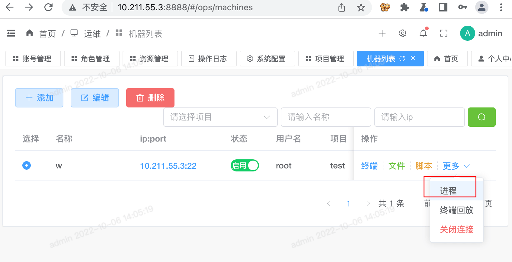 在后台 运维-机器列表-机器操作-文件 处,点击进程