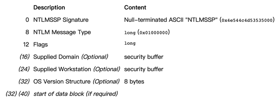 客户端需要访问服务器的某个服务(前提是他得知道服务器的用户名和密码),所以得进行身份认证。于是,客户端输入服务器的用户名和密码进行验证,客户端会缓存服务器密码的 NTLM-Hash 值。客户端发送 TYPE 1 Negotiate 协商消息去协商需要认证的主体,用户(服务器端的用户名),机器以及需要使用的安全服务等等信息。