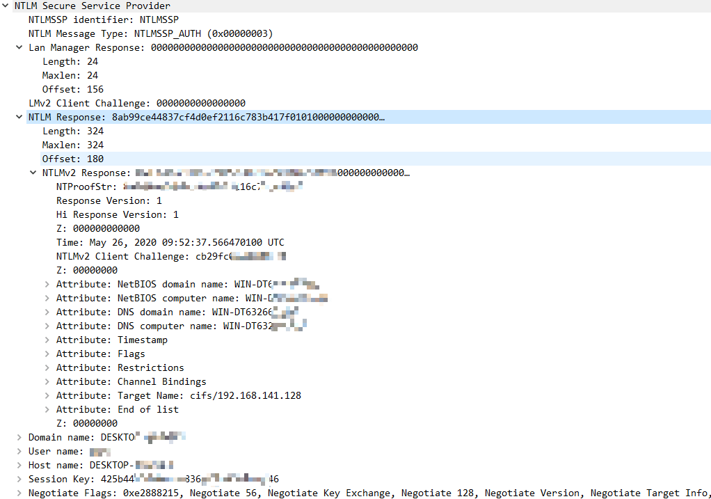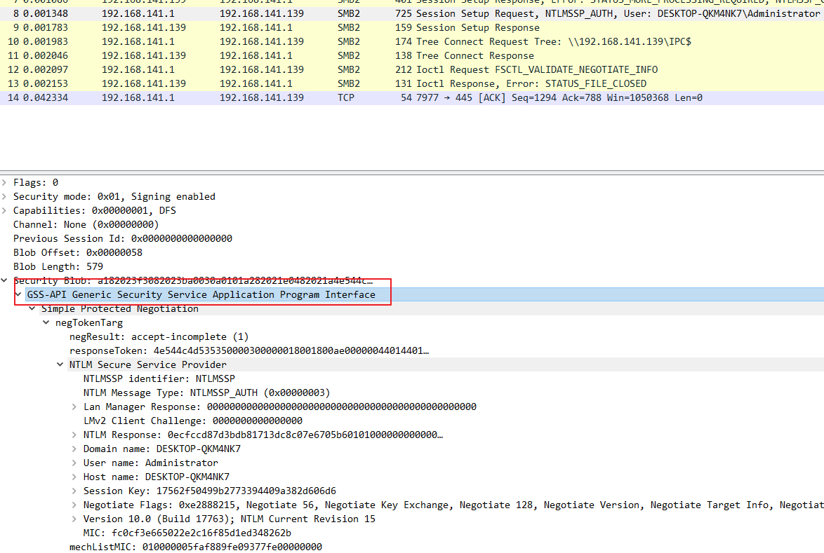 sessionkey 是在要求进行签名的时候用的,用来进行协商加密密钥,可能有些文章会说 sessionkey 就是加密密钥,需要拥有用户 hash 才能计算出来,因此攻击者算不出来,就无法加解密包。但是想想就不可能,这个 session_key 已经在流量里面明文传输,那攻击者拿到之后不就可以直接加解密包了。