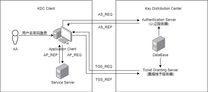 - KDC 存储了其数据库下所有主机和服务的密钥