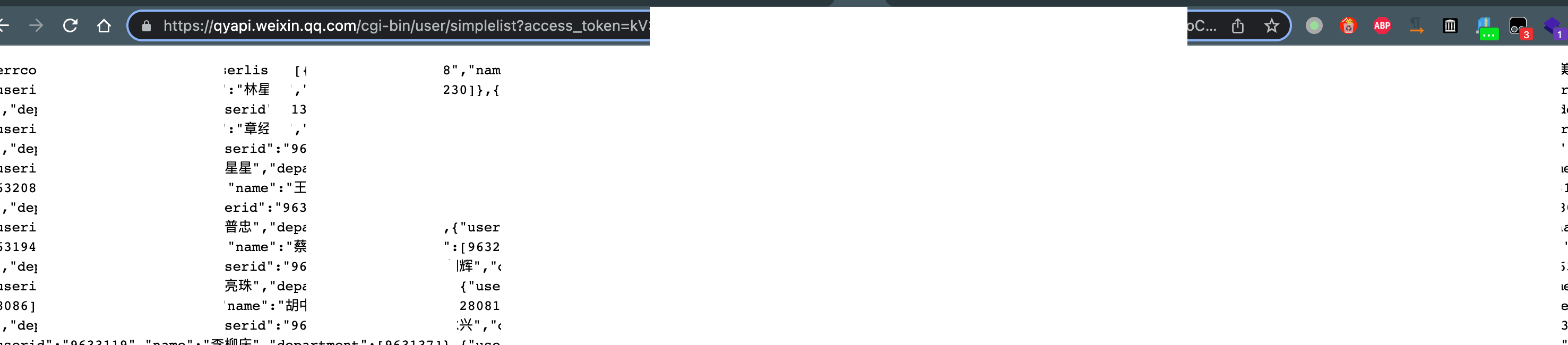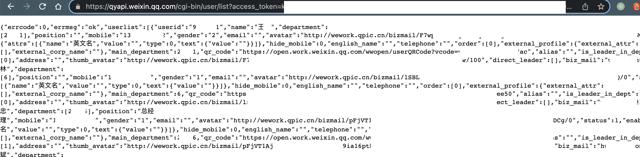 https://qyapi.weixin.qq.com/cgi-bin/user/list?access_token=eQq8YjcgxHOtk39Xu4d3脱敏脱敏脱敏脱敏脱敏脱敏脱敏ULE60ISuQvXMLNcsHtyNqsw3wn5hd0vM脱敏脱敏脱敏脱敏脱敏脱敏脱敏脱敏脱敏脱敏脱敏脱敏脱敏脱敏脱敏脱敏脱敏脱敏脱敏脱敏脱敏&department_id=1&fetch_child=1