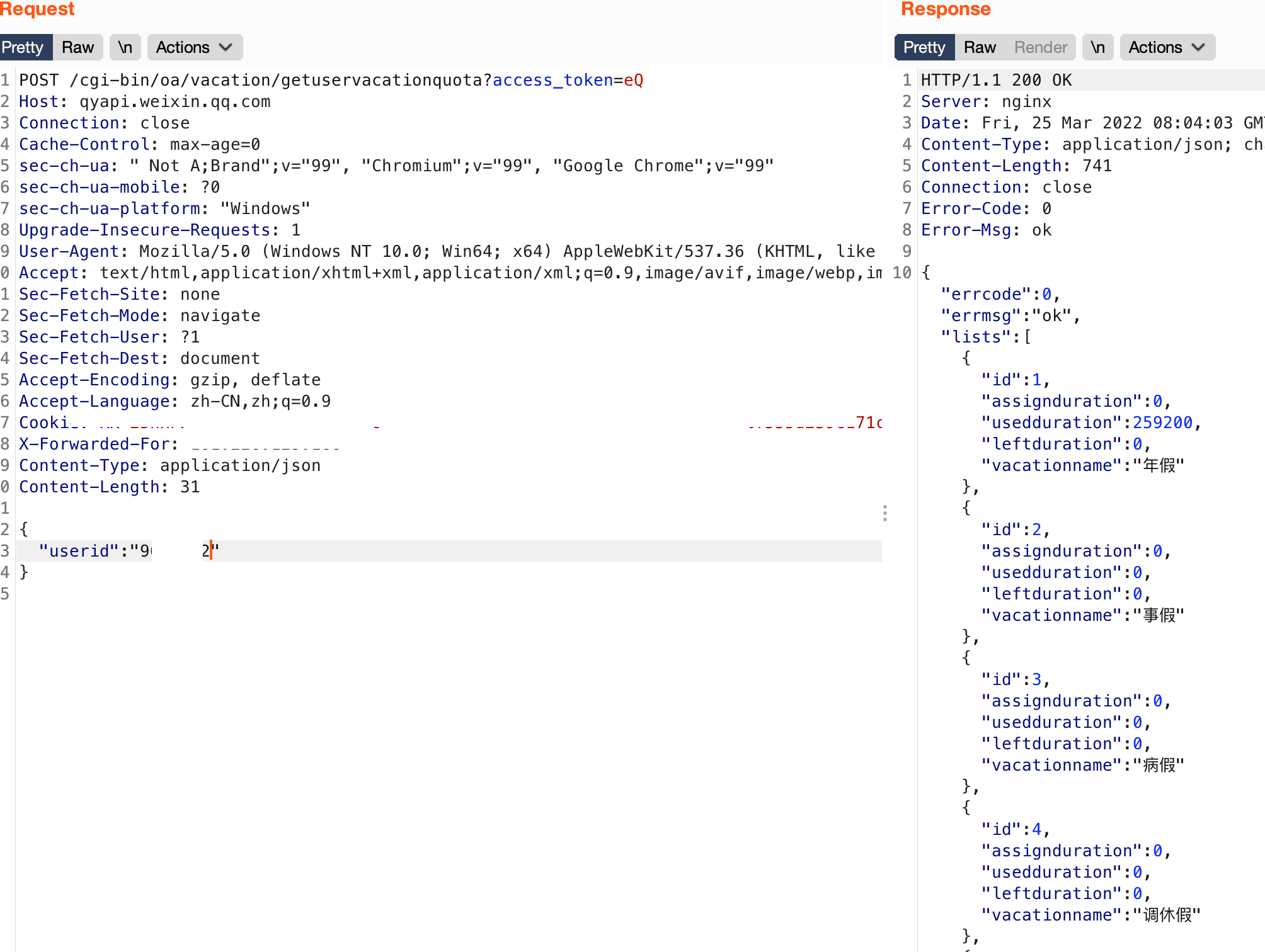 POST /cgi-bin/oa/vacation/getuservacationquota?access_token=eQq8YjcgxHOtk39Xu4脱敏脱敏脱敏脱敏脱敏脱敏脱敏lx38ULE60ISuQvXMLNcsHtyNqsw3wn5hd0vM脱敏脱敏脱敏脱敏脱敏脱敏脱敏脱敏脱敏脱敏脱敏脱敏脱敏脱敏脱敏脱敏脱敏脱敏脱敏脱敏脱敏 HTTP/1.1